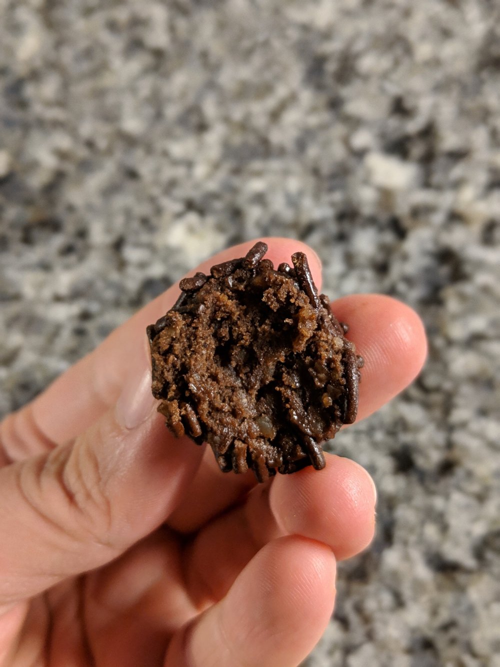 Ich habe dieses Mal die Resten des Cupcake-Frostings von meinen Weihnachts-Cupcakes, übrig gebliebenes Schokoladenganash und übrig gebliebenes Mandelmehl von den Macarons (Rezept wird bald verfügbar sein) und übrig gebliebene “Schokoladenerde” von meinem Chocolate-Maple-Bacon, bzw. Schokoladen-Ahorn-Speck-Dessert (Rezept wird bald verfügbar sein) aufgebraucht.