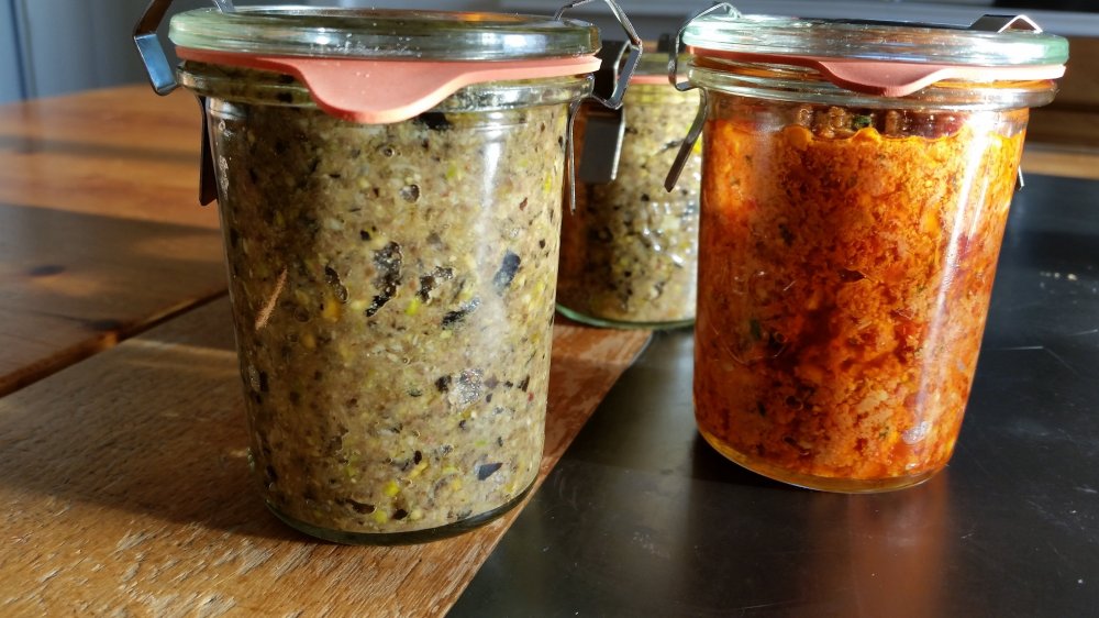 Dieses Mal habe ich zwei Arten von Winterpesto gemacht: Ein getrocknetes Steinpilzpesto und ein Pesto Rosso mit eingelegten Tomaten und Chili. Die Rezepte sind für jeweils ca. 3 x 250ml grosse Gläser: