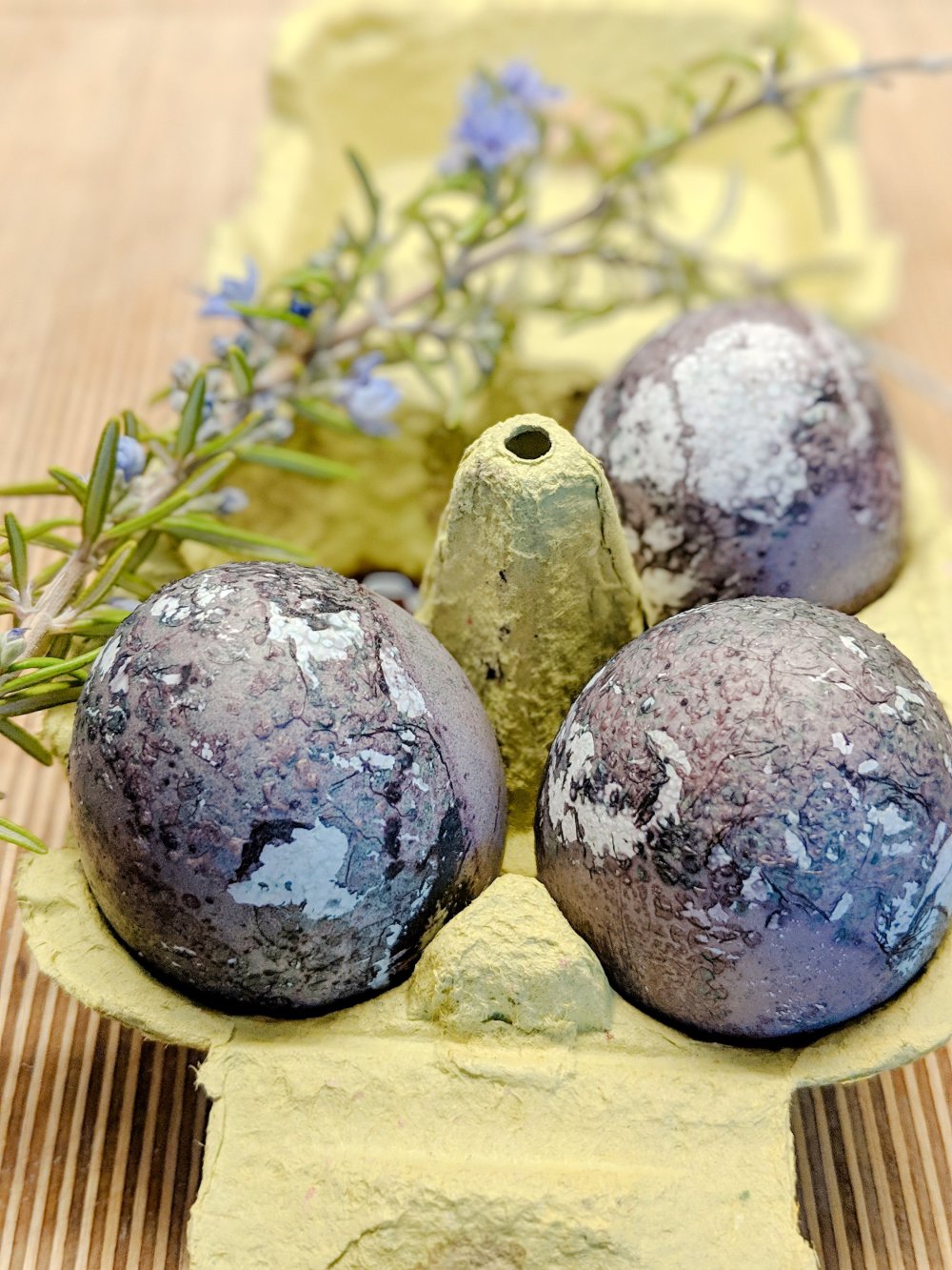 Es ist Ostern! Und selbst wenn ich sehr beschäftigt bin, nehme ich mir immer zumindest ein bisschen Zeit für Ostern, also habe ich diese schnell und einfach gefärbten violetten Eier mit Heidelbeersaft gemacht.