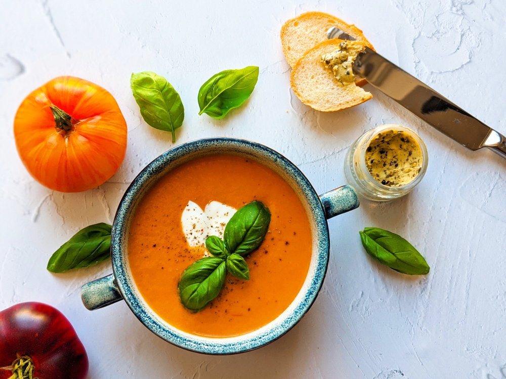 PS: Ic hhabe die Suppe mit Brot und selbstgemachtem Basilikum-Knoblauch-Butter serviert.